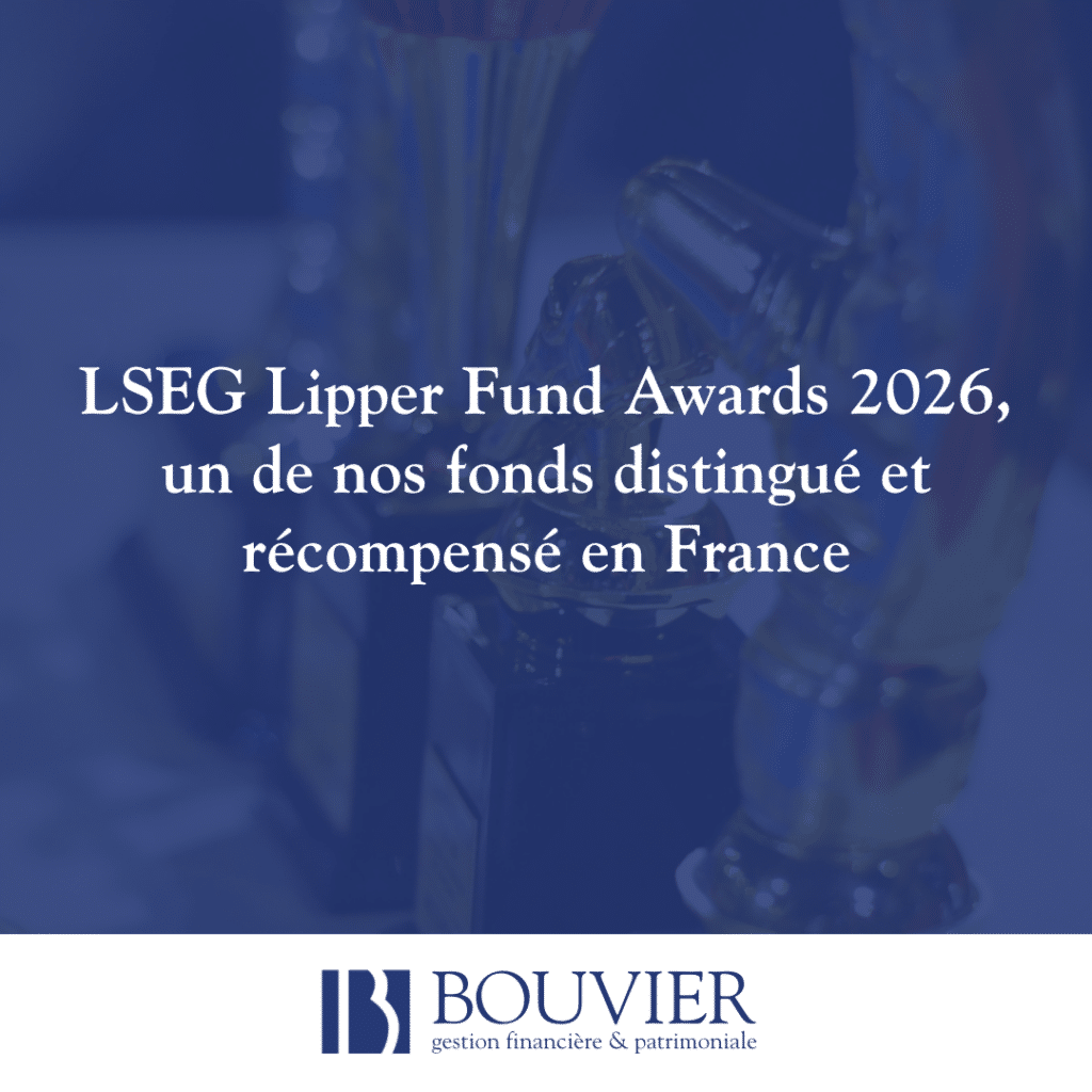 Bouvier Gestion a le plaisir d’annoncer que son fonds de gestion flexible multi-actifs, Placeuro BG Opportunités (Class C EUR), a été récompensé à l’occasion des LSEG Lipper Fund Awards 2026 pour la France, dans la catégorie Mixed Asset EUR Flexible – Global, sur une période de trois ans.